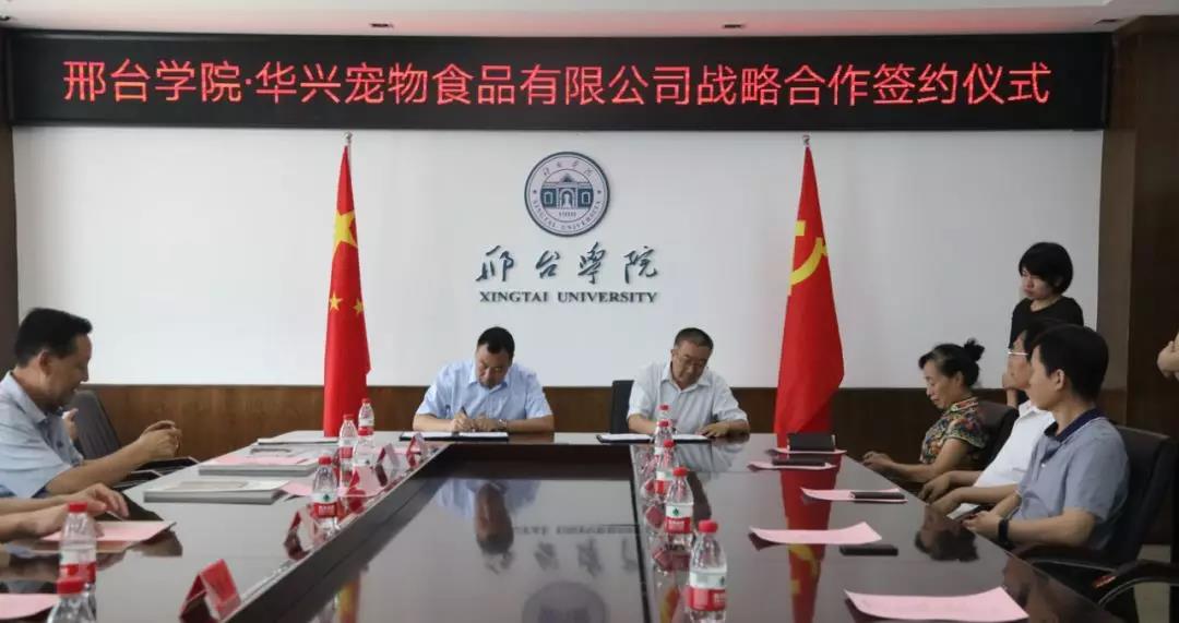 7月3日,南和縣委常委、組織部長李中伏,南和縣委常委、統(tǒng)戰(zhàn)部長樊振宇以及南和縣人大、政協(xié)、農(nóng)業(yè)農(nóng)村局等相關(guān)領(lǐng)導(dǎo)與華興寵物食品有限公司總經(jīng)理冀葉軍一行一起前往邢臺學(xué)院參加邢臺學(xué)院·華興寵物食品有限公司戰(zhàn)略合作簽約儀式。邢臺學(xué)院校長蔡振禹與校方其他主要領(lǐng)導(dǎo)成員參與了合作簽約儀式。