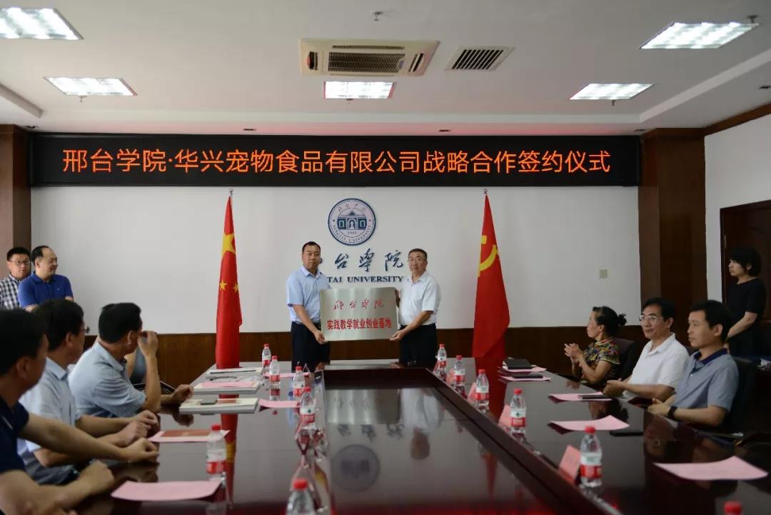 上午11時30分整,華興寵物食品有限公司總經(jīng)理冀葉軍與邢臺學(xué)院校長蔡振禹在戰(zhàn)略合作書上簽字,隨后由蔡校長代表邢臺學(xué)院進(jìn)行授牌儀式,授予華興寵物食品有限公司“實踐教學(xué)就業(yè)創(chuàng)業(yè)基地”,標(biāo)志著華興寵物食品有限公司和邢臺學(xué)院的戰(zhàn)略合作全面開始。